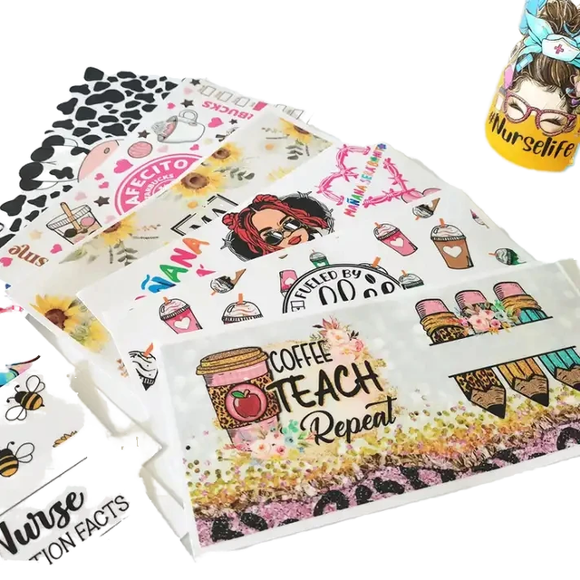 สติกเกอร์ติดถ้วยแบบลอกลายยูวีสำหรับ DTF 16ออนซ์ขวดแบบลอกลายด้วยความร้อนเวอร์ชันสเปน